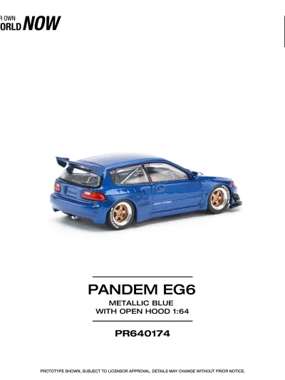 QAR 110POPRACE 1:64 Pandem Civic EG6 in Metallic Blue — a sleek, widebody tribute to one of the most beloved JDM hatchbacks. Featuring aggressive Pandem styling, premium detailing, and a vibrant metallic finish, this collectible is built to stand out. -