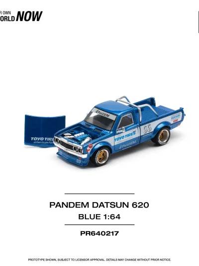 QAR 110POPRACE 1:64 Pandem Datsun 620 – Blue blends vintage pickup charm with modern tuner attitude. Featuring the aggressive Pandem widebody kit, deep blue finish, and POPRACE’s signature detailing, it’s a standout piece for JDM and custom truck fans. -
