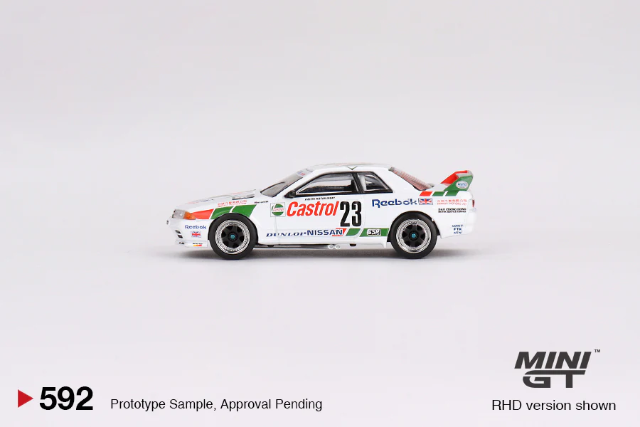 Celebrate touring car racing history with the MINI GT 1:64 MGT00592 Nissan Skyline GT-R (R32) Gr. A #23 1990 Macau Guia Race Winner, a highly detailed 1:64 scale replica of the legendary race car that dominated the 1990 Macau Guia Race.
