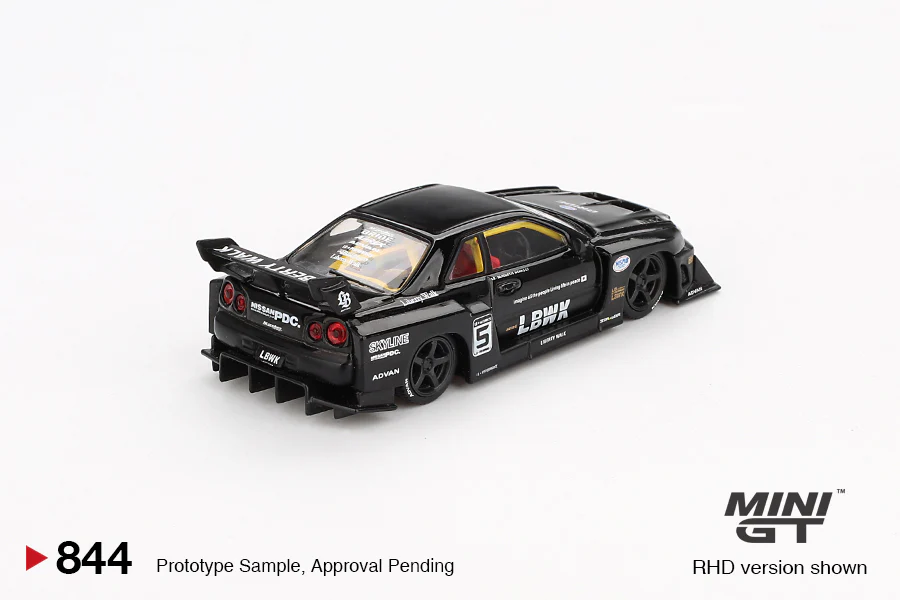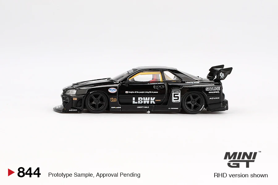 Bring modern tuning and retro racing inspiration to your display with the MINI GT 1:64 MGT00844 Nissan LB-ER34 Super Silhouette SKYLINE Black, a highly detailed 1:64 scale replica of the iconic Skyline reimagined with Liberty Walk’s Super Silhouette styling.