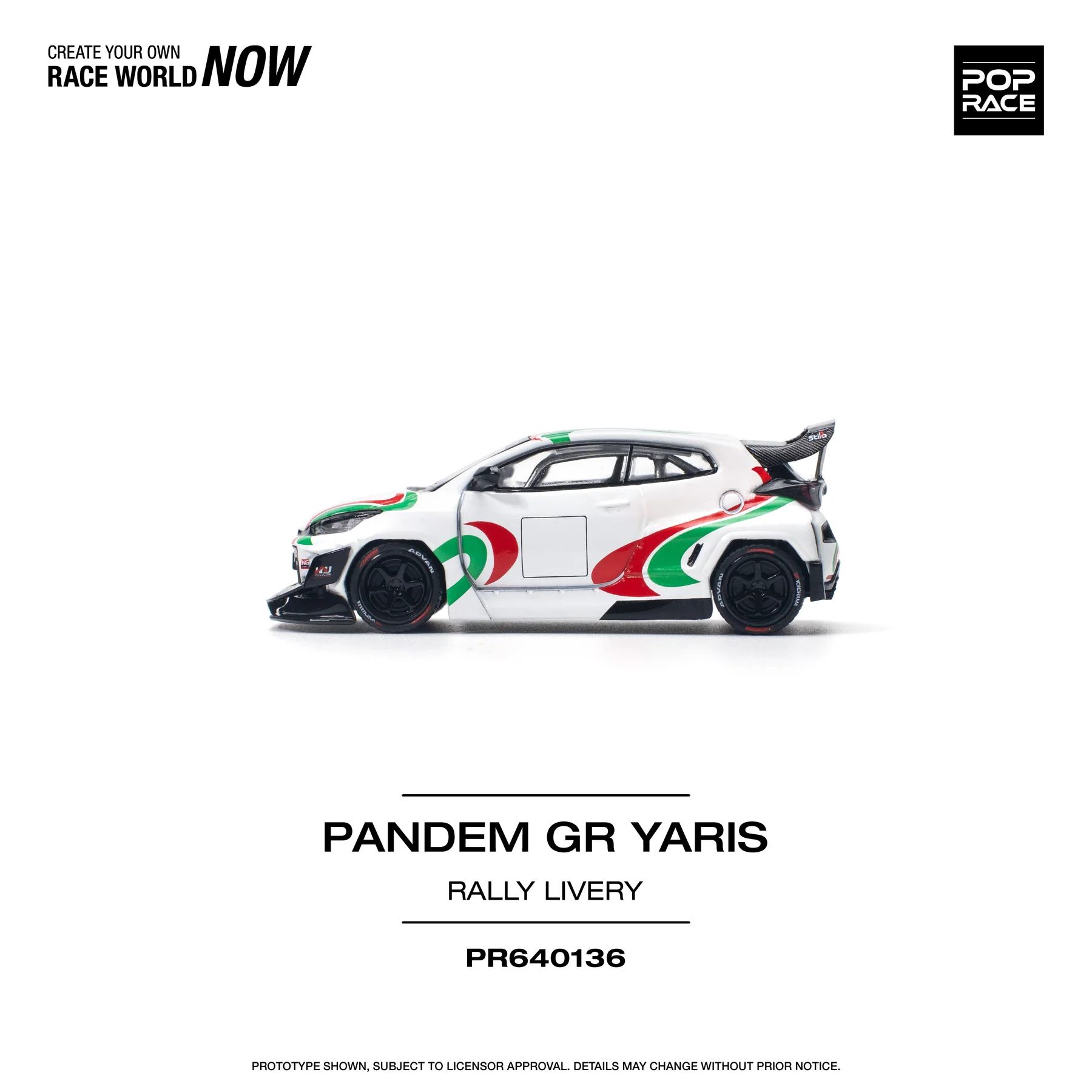 Bring rally excitement to your collection with the POPRACE 1:64 Toyota Pandem GR Yaris – Rally Livery. This detailed miniature showcases Toyota’s hot-hatch legend transformed by the Pandem widebody kit, giving it an aggressive stance and race-ready presence.