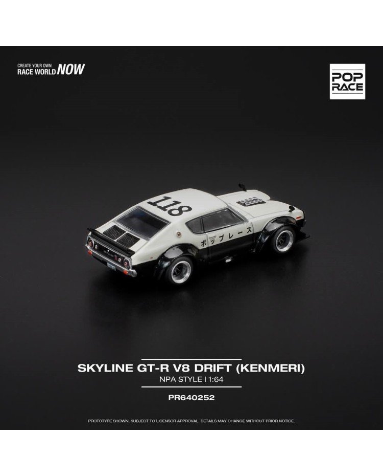 Introducing the Pop Race 1:64 Nissan Skyline GT-R Kenmeri V8 Drift (PR640252) — a bold fusion of classic JDM heritage and modern drift performance.